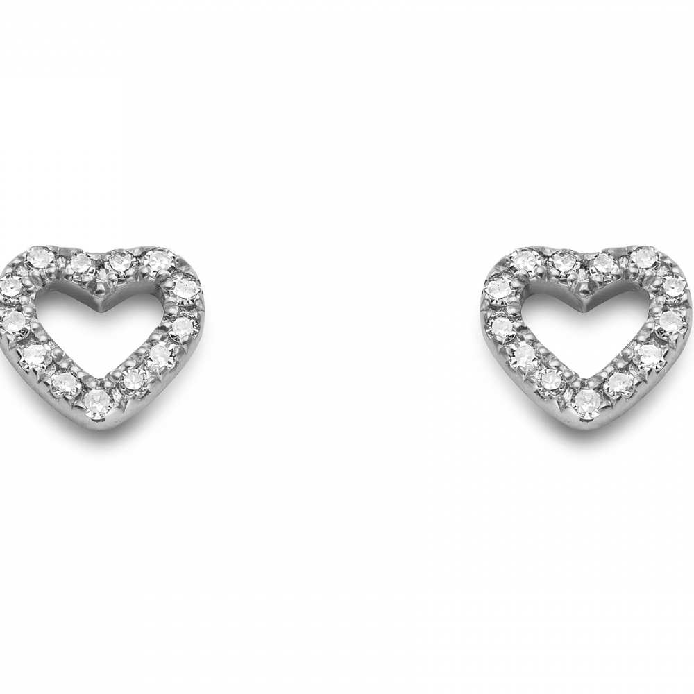 9ct white gold diamond heart stud earring