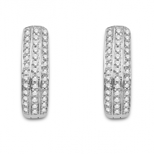 9ct White Gold Three Row 0.24 carat Diamond Set Hoop Earrings