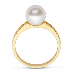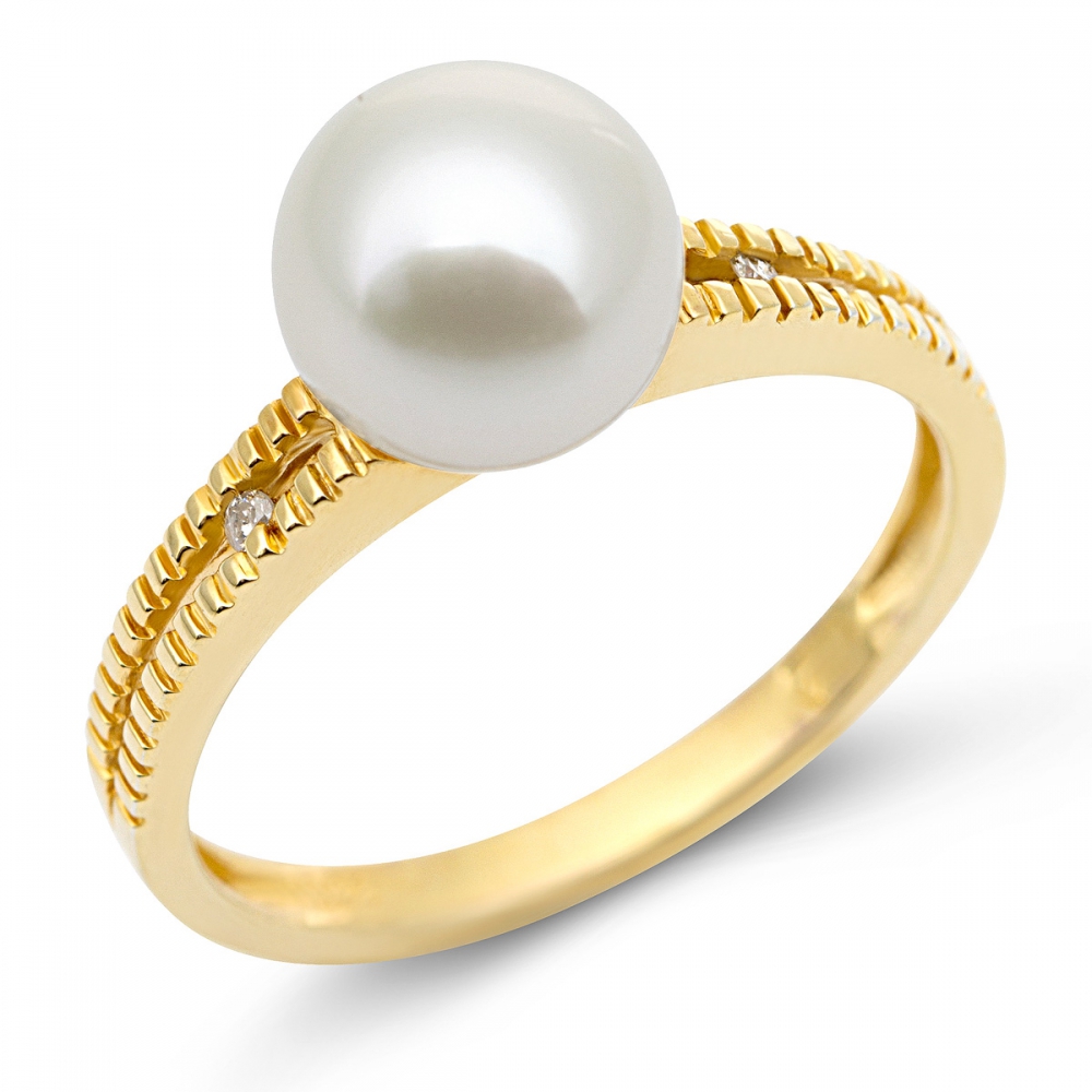 9ct Fresh Water perle Bague Or Jaune diamants